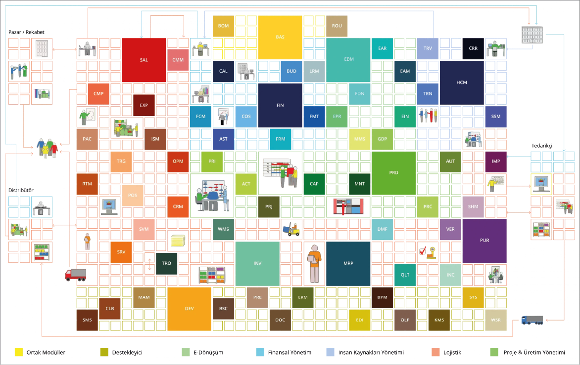 Canias ERP, planlama, tedarik, üretim, satış, müşteri ilişkileri yönetimi (CRM), finans ve proje yönetimi gibi birçok iş sürecini entegre bir yapıda sunar. Bu sayede tüm iş süreçlerinizi tek bir platform üzerinden kolaylıkla yönetebilirsiniz.